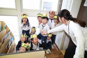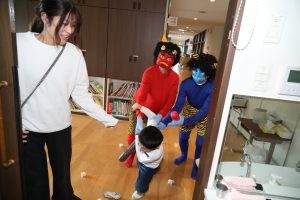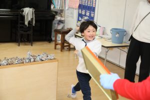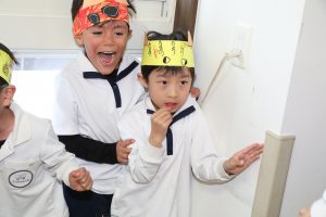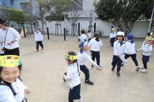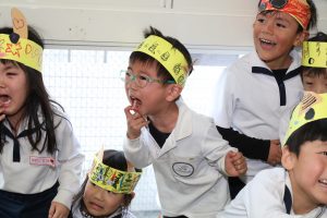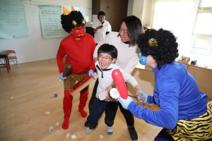 2月3日(火)MIKに鬼がやってきました!豆をまいてやっつけましたよ~!!勇気を出してがんばりました!